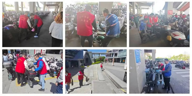 參與活動(dòng)的黨員們積極參與到活動(dòng)中來:面對人行道上出現(xiàn)的垃圾,他們不怕臟累,一次次耐心撿起,將煙頭、紙團(tuán)等小型垃圾收集至垃圾袋中,大型垃圾則直接丟棄至就近垃圾桶;面對停放雜亂的電動(dòng)車,大家則互相配合,合作整理,并引導(dǎo)正在停車的車主有序停放,讓原本略顯雜亂的停車區(qū)很快變得井井有條起來。