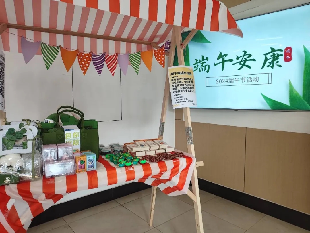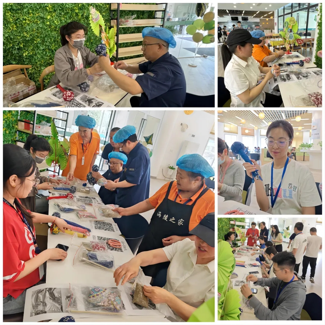 “端午滾滾樂”:食堂入口處,鋪上了一塊兩米長的地毯,裝點著可愛的小粽子,大小相同的空白窗格像階梯一樣列隊在地毯中央。員工們紛紛加入游戲,站在指定位置,將飲料罐滾動至相應(yīng)窗格中,獲得驚喜獎品;未能獲獎的員工,也都領(lǐng)取到端午節(jié)五色繩。海陵工會為員工們準備了端午大禮包、補水儀、端午掛飾、零錢包等眾多獎品,活動現(xiàn)場熱鬧非凡,員工們積極參與游戲,共祝端午安康。
