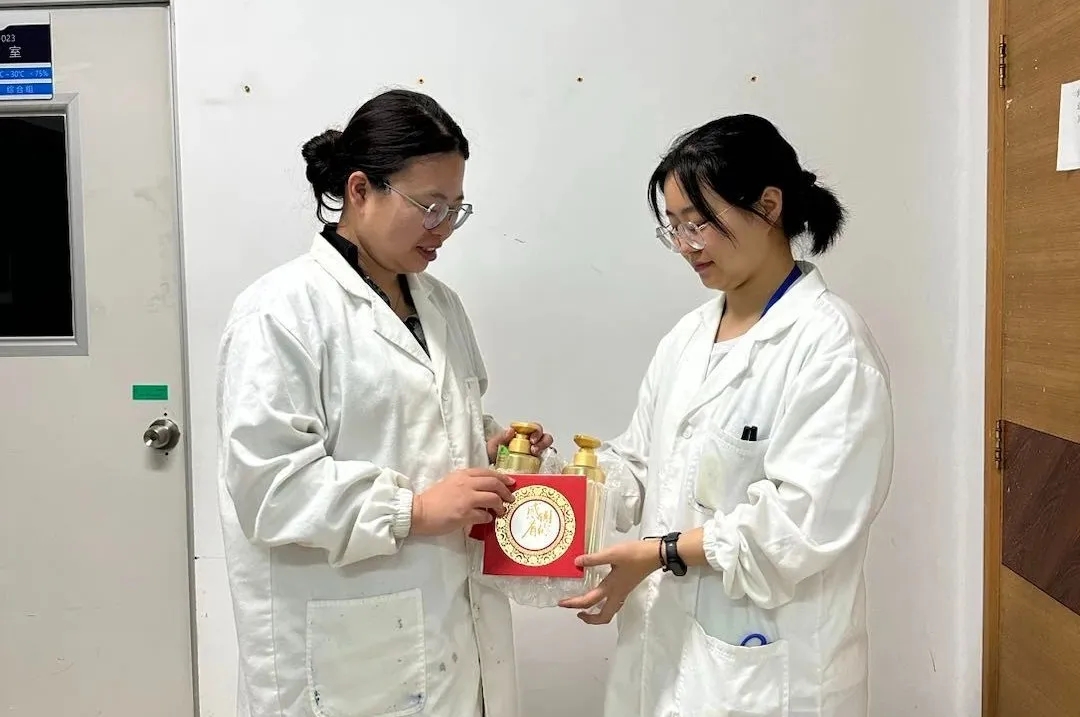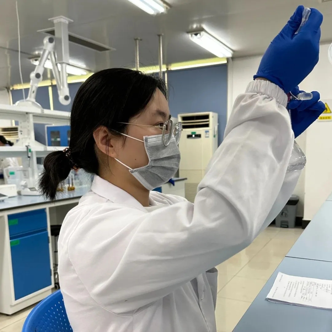 面對(duì)每一項(xiàng)任務(wù),她都敢于挑戰(zhàn)、不畏困難。在成品組的檢測(cè)項(xiàng)目中,她發(fā)現(xiàn)對(duì)照品物質(zhì)在室溫下易融化導(dǎo)致稱稱樣結(jié)果不準(zhǔn)確的問題,經(jīng)過(guò)幾次檢測(cè)該產(chǎn)品后,她積極思考如何有效控溫并提高稱量速度。經(jīng)過(guò)一番思索,她嘗試使用過(guò)濾膜塑料盒加水制作簡(jiǎn)易“冷凍倉(cāng)”,在稱量過(guò)程中幫助產(chǎn)品有效保溫,保證對(duì)照品處于冷凍狀態(tài)。在經(jīng)過(guò)多次使用后,發(fā)現(xiàn)該方式對(duì)稱量對(duì)照品速度有顯著提升,同時(shí)減少了對(duì)照品使用成本。