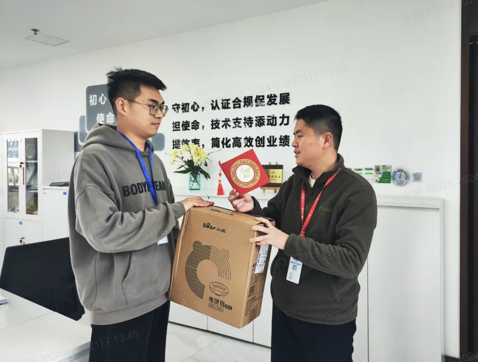 海陵衷心對他們的付出表示感謝,并為其準(zhǔn)備了感恩卡和禮物,直屬領(lǐng)導(dǎo)“驚喜出現(xiàn)”,將手寫感謝卡和禮物交給他們!