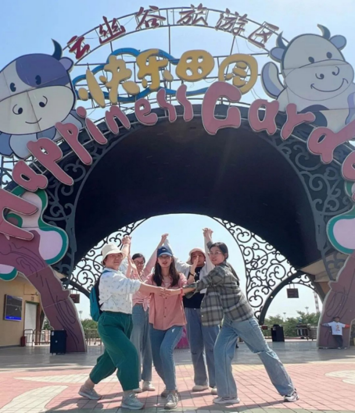 在景區(qū)入口拍攝了集體合影后,大家在隊長們的帶領(lǐng)下,迫不及待地開始參與第一項任務(wù)——小組創(chuàng)意合影。每個小組都發(fā)揮豐富的想象力,拍出了創(chuàng)意感滿滿的照片。