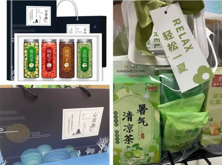 每位現(xiàn)場的高溫作業(yè)人員都收到了一份高溫防暑禮包:蒸汽眼罩、濕巾、防蚊膏、暑氣清涼茶、冰涼貼、風扇、花露水;以及一份夏日養(yǎng)生茶禮盒:菊花茶、枸杞子、決明子、金銀花。