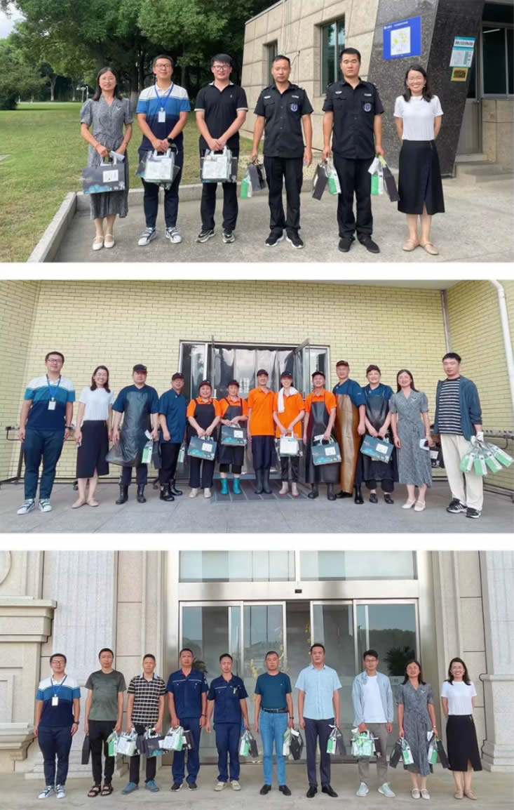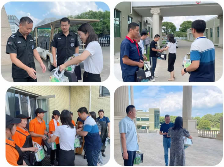 南京海陵黨支部書記李靜、南京海陵工會主席徐秋霞、南京海陵辦公室主任車越慰問奮斗在一線的員工,為他們送上了防暑禮包及養(yǎng)生茶禮盒。