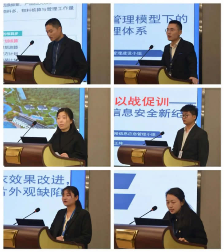 3月14日13:15,比賽正式開(kāi)始。本屆大賽共有14個(gè)團(tuán)隊(duì)參賽,涉及企業(yè)各業(yè)務(wù)模塊的創(chuàng)新應(yīng)用?!痘赥RIZ理論建立孟魯司特鈉中殘留溶劑的新方法》,《亞硝酸鹽過(guò)濾條件優(yōu)化-提升一次性檢驗(yàn)合格率》、《TOC項(xiàng)目?jī)?yōu)化》三個(gè)課題重點(diǎn)介紹了新結(jié)構(gòu)化工具在質(zhì)量管理中的結(jié)合應(yīng)用;《產(chǎn)品A包衣效果改進(jìn)》、《小容量洗灌封設(shè)備精準(zhǔn)維護(hù)與效率提升》兩個(gè)課題探討如何提高產(chǎn)品生產(chǎn)環(huán)節(jié)的質(zhì)量和效率;《基于動(dòng)力中心制冷系統(tǒng)節(jié)能水泵的設(shè)計(jì)與應(yīng)用》、《提高工廠經(jīng)營(yíng)成本競(jìng)爭(zhēng)力》、《提升固體制劑產(chǎn)品排產(chǎn)效率》則在不同維度聚焦降能耗、控成本、提效率;《倉(cāng)儲(chǔ)系統(tǒng)確認(rèn)方法改進(jìn)提升》、《如何建立潔凈服重復(fù)使用考察新標(biāo)準(zhǔn)》、《精準(zhǔn)狙擊冗雜驗(yàn)證過(guò)程》在驗(yàn)證管理方面做出新探索;《基于智能物聯(lián)技術(shù)的廠區(qū)新能源車(chē)輛管理模式》、《零星工程管理模型下的供應(yīng)商管理體系》、《以戰(zhàn)促訓(xùn)——構(gòu)建全員信息安全新紀(jì)元》實(shí)現(xiàn)了“業(yè)務(wù)+信息化”的組合創(chuàng)新,聚焦當(dāng)下熱門(mén)的信息化、智能化轉(zhuǎn)型。