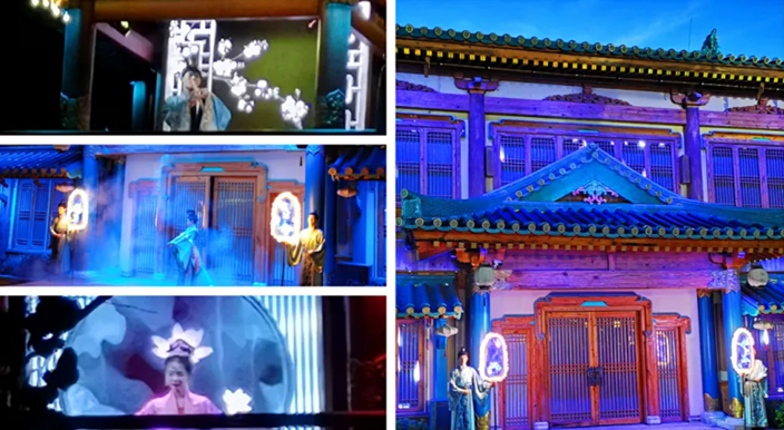 看建筑,文心館、鄰曲巷、滿庭芳、凌霄臺(tái)、綠筱園融為一體,相得益彰;看演出,六朝的文明記憶在演出中被悄然喚醒,小伙伴們也紛紛沉浸其中。